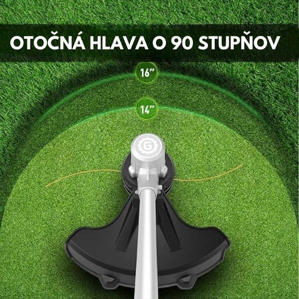 Viacúčelová kosačka s otáčavou hlavou o 90 stupňov poskytuje bezkonkurenčnú všestrannosť pri práci na záhrade.