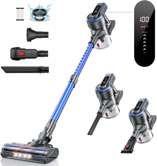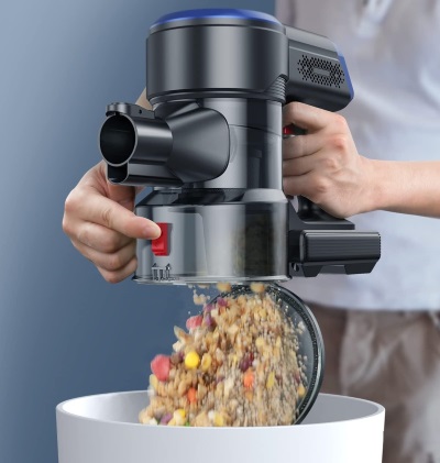 Той ефективно почиства прахосмукачката и премахва праха, космите от домашни любимци, мръсотията и други отломки от подове и килими и др. Може да се използва и като ръчна или стик прахосмукачка за лесно почистване на дивани, завеси и дори компютърни клавиатури и много други.