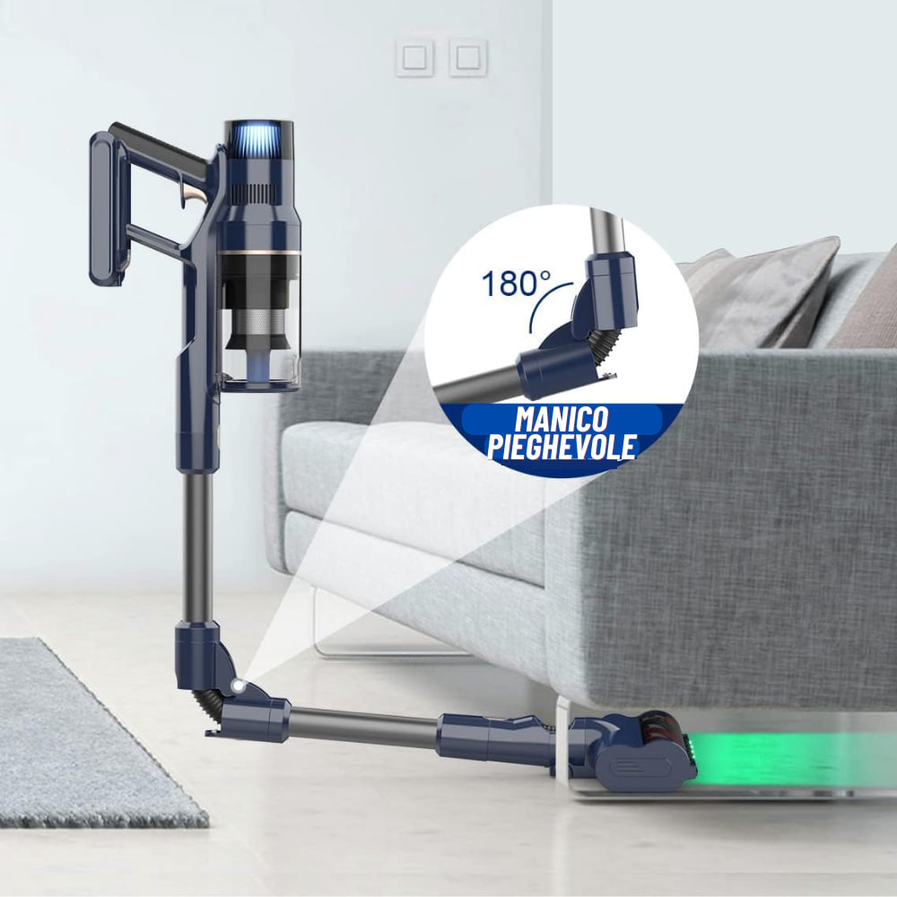 L'aspirapolvere Cordles Vac è dotato di tecnologia ciclonica di ultima generazione, con un motore più potente che crea un flusso d'aria dall'esterno verso l'interno dell'aspirapolvere, carico di polvere, peli di animali domestici, peli umani e lo sporco più duro.