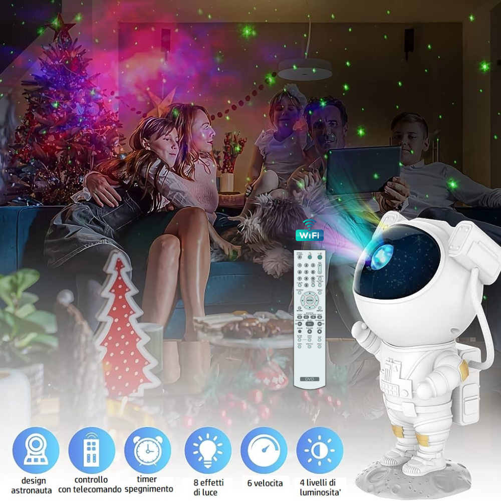 Il pulsante sul retro della luce principale astronauta può passare dalla modalità nebulosa alla modalità cielo stellato, premi a lungo e si spegne o puoi regolare il tutto con il telecomando
