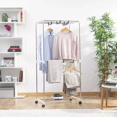 Questo Box Asciugabiancheria utilizza un sistema di asciugatura ad aria calda che è delicato sui tessuti ma efficace nell’eliminare l’umidità. Inoltre, è dotato di un sistema di riscaldamento dell’ambiente, contribuendo a mantenere la stanza calda e accogliente.