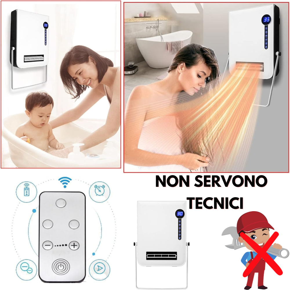 RISCALDAMENTO PERSONALIZZATO E RISPARMIO ENERGETICO Il nostro termoconvettore a muro da soli 300W è la soluzione perfetta per il tuo comfort termico. Grazie al suo design elegante e all’installazione semplice, avrai il controllo completo su dove e quando desideri riscaldare. Con una potenza elevata e un flusso d’aria forte, raggiungerai il comfort desiderato in pochi istanti, tutto questo senza sprechi di energia. Il telecomando incluso ti dà la possibilità di gestire il riscaldamento in modo facile e comodo, mentre l’efficienza energetica ti aiuterà a risparmiare denaro sulle bollette.
