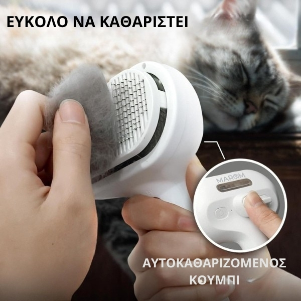 απελευθερώνονται αυτόματα από τη βούρτσα, χωρίς να χρειάζεται να τις μαζεύεις με το χέρι. Αυτό το υγιεινό και καινοτόμο σύστημα σου επιτρέπει να κρατάς τη βούρτσα πάντα καθαρή και έτοιμη για χρήση, κάνοντας τη φροντίδα των ζώων πιο γρήγορη, άνετη και χωρίς σπατάλη.