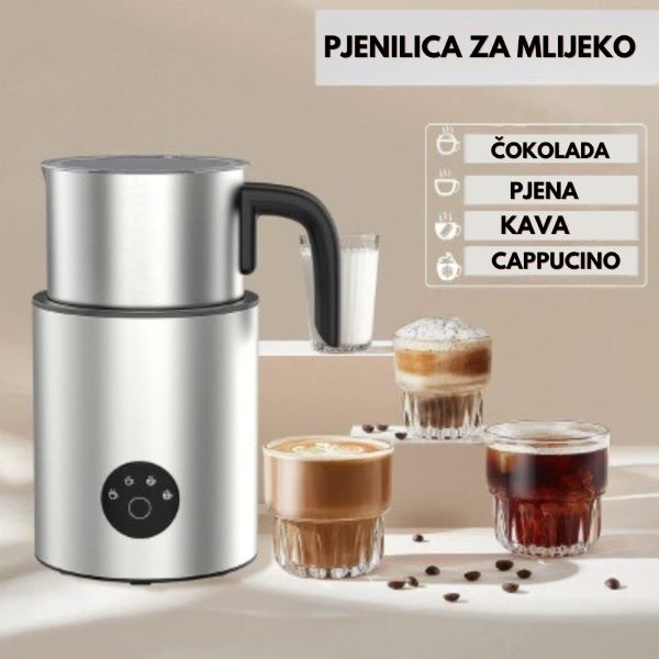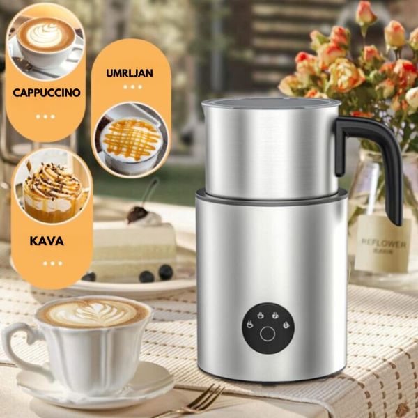 Topla i gusta mliječna pjena; Vruće mlijeko; Čokoladno mlijeko ili hladno pjenasto mlijeko samo stavite svoje omiljeno piće u vrč, uključite prekidač i čelična pjenjača zagrijava se i umuti za nekoliko sekundi, kada dosegne željenu temperaturu