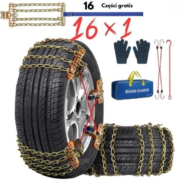 Poniższa oferta obejmuje Uniwersalne łańcuchy śniegowe + akcesoria
