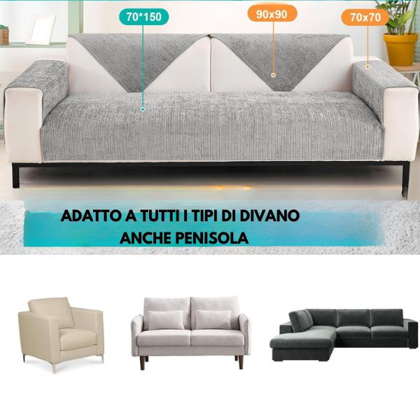 Il copridivano è progettato per aderire perfettamente ad ogni tipo di divano, PERFETTO anche per le SUPERFICI LISCE DEI DIVANI IN PELLE ED ECO O SU POLTRONE RELAX!
