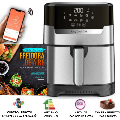Easy Cook XXL abre las puertas a un nuevo sistema avanzado de ahorro de energía, consumiendo solo 600 vatios.Gracias a su inversor bobinado integrado, Easy Cook XXL libera la misma potencia que una freidora de 2500 vatios, pero solo consume 600.Consume un 93% menos de electricidad en comparación con hornos y freidoras convencionales.Además, se ha demostrado que al usar Easy Cook XXL para cocinar en lugar de la cocina tradicional, se logra un ahorro adicional del 86% en la factura del gas.