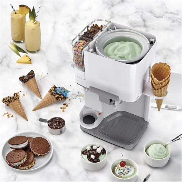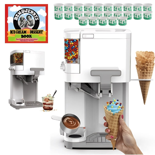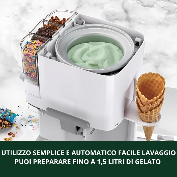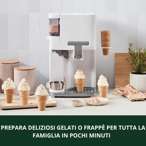 🏠 Prepara dessert per tutti, senza sporcare la cucina! 🧼 La velocità è tutto quando hai ospiti a cena o bambini impazienti. In appena 5 minuti puoi preparare fino a 1,5 litri di dessert da servire subito. Non servono impianti ingombranti o attrezzature da chef: questa macchina fa tutto in autonomia, lasciando il piano cucina pulito e ordinato grazie al suo design compatto e al vassoio raccogli gocce.