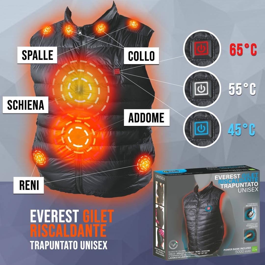 thermoGilet è incredibilmente leggero e compatto, il che lo rende perfetto per l’escursionismo, la motocicletta e tutte le tue attività all’aperto. Non aggiunge peso extra al corpo, ma offre calore essenziale durante le avventure, specialmente in inverno.Indossabile sotto la giacca o sopra una maglia, ThermoGilet si adatta a qualunque stile di vita.