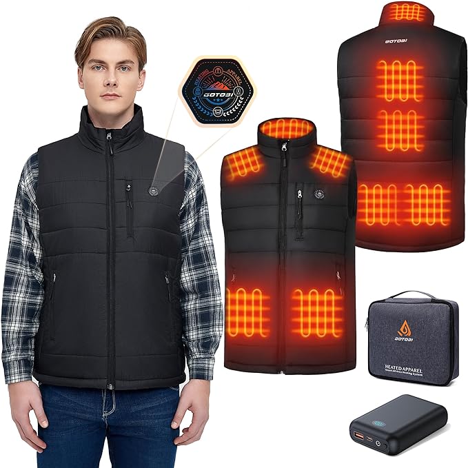 Il nostro gilet riscaldato adotta un design al collo alto per un maggiore calore, coprendo l'intero collo. Non è necessario acquistare sciarpe aggiuntive e vi tiene al caldo, non c'è bisogno di preoccuparsi che l'aria fredda entri nei vestiti. La spia rossa indica l’alta temperatura, che è sostanzialmente stabile a circa 65°C; la spia blu indica la media temperatura, che è sostanzialmente stabile a circa 55°C; la spia verde indica la bassa temperatura, che è sostanzialmente stabile a circa 45°C.