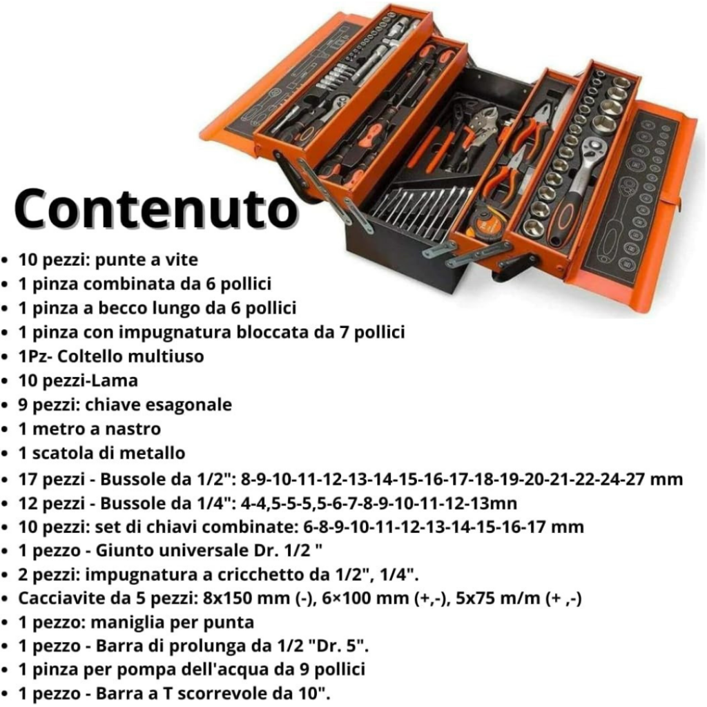 Organizzazione e Versatilità: La Cassetta Attrezzi Tuttofare per Ogni LAVORO AMATORIALE E PROFESSIONALE , ATTREZZI IN acciaio cromo e vanadio anti-spanatura