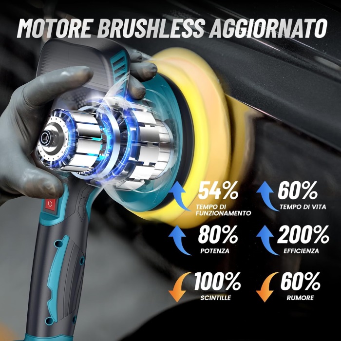 Ottimo strumento! Lo uso per lucidare la mia auto ed è fantastico anche per altre superfici. Pratico e senza fili, lo consiglio!