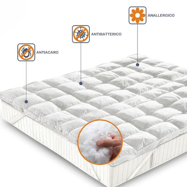 Goditi un sonno fresco e avvolgente con il nostro TOPPER IN PIUMA, realizzato in morbido materiale traspirante. Il rivestimento innovativo non solo offre una sensazione di lusso al tatto,