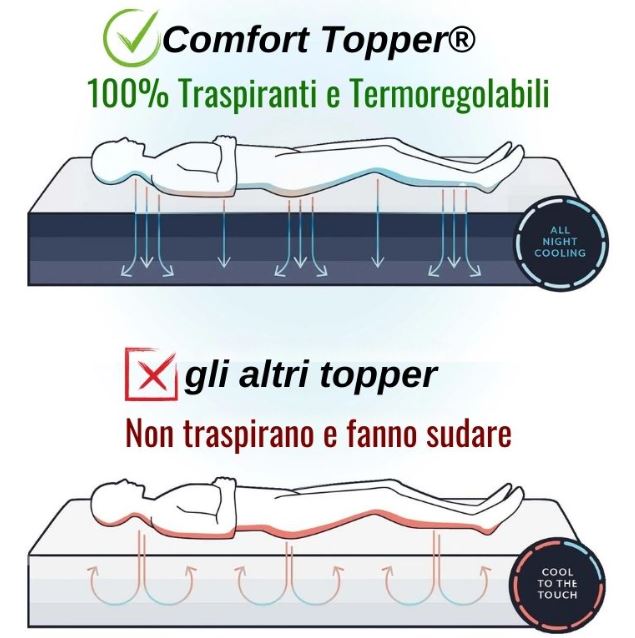 Aumenta la qualità del sonno grazie ai 5 centimetri di morbidezza e comfort che pUò darti il nostro topper in memory foam infuso a gel, ritroverai il piacere di dormire e di risvegliarti finalmente riposato.