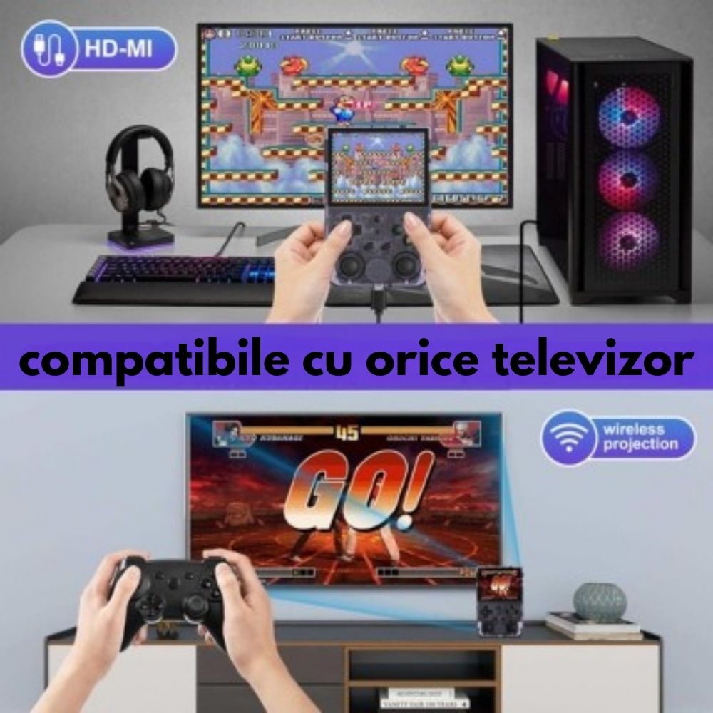 consolele suportă tehnologia hdmi, bluetooth și wi-fi, care îți permite să redai jocul în streaming pe orice dispozitiv, cum ar fi tv, monitor și altele.