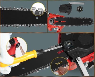 la catena auto-lubrificata a maglie di acciaio rinforzato permette tagli netti e precisi di ogni tipo di superficie e non solo legno