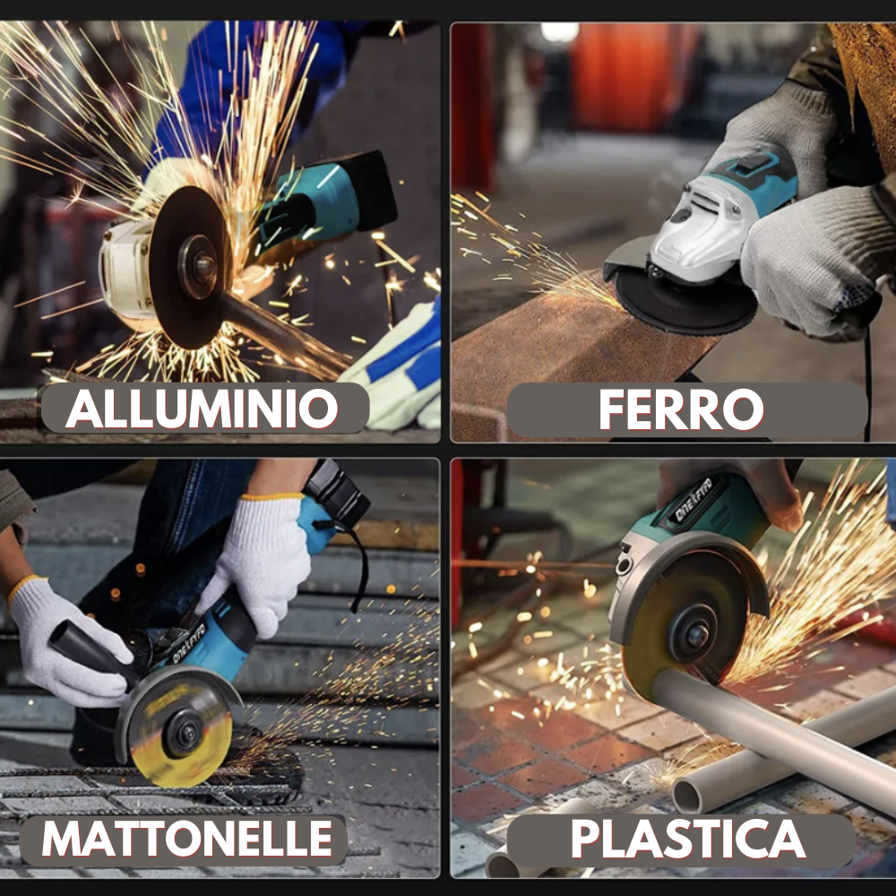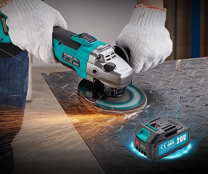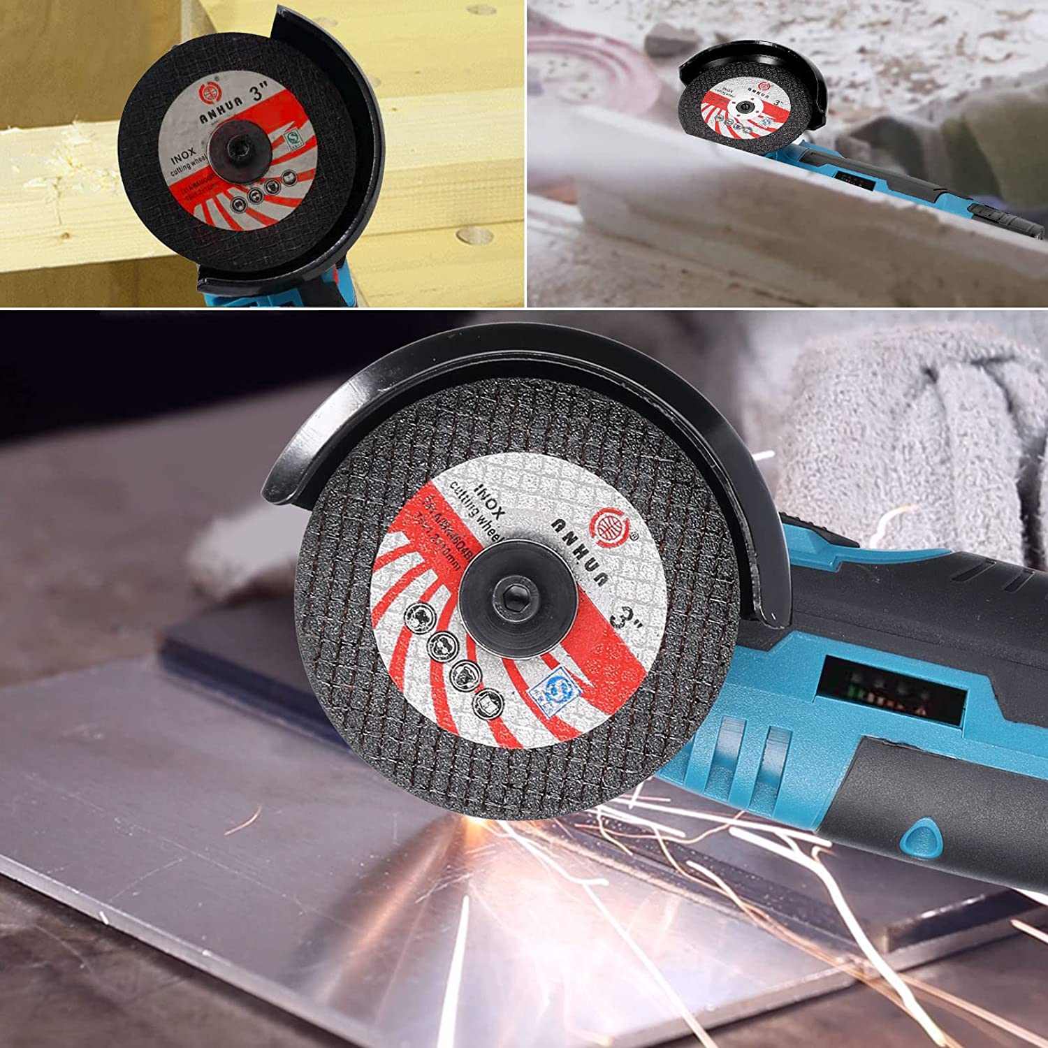 Questa smerigliatrice angolare è adatta a mole con diametro esterno di 75 mm x 10 mm, adatte alla smerigliatura dei metalli, alla sbavatura, alla finitura delle superfici, alla rimozione della ruggine e al taglio del legno. La smerigliatrice angolare a batteria è un elettroutensile versatile in grado di gestire una varietà di progetti come smerigliatura, taglio, lucidatura e altro ancora