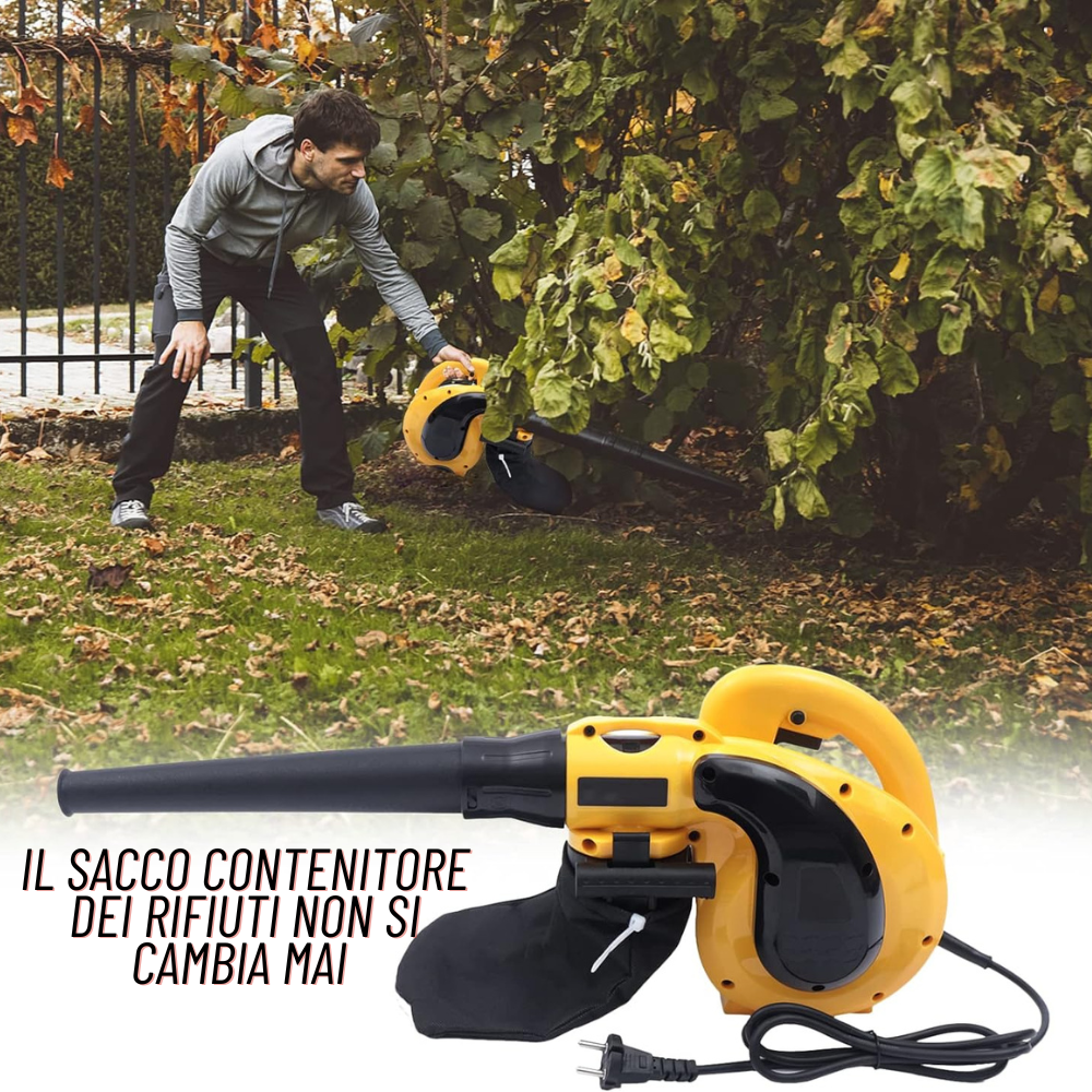 Con due modalità di funzionamento, soffiaggio e aspirazione, avrai la flessibilità di affrontare una vasta gamma di compiti. Trasforma il tubo di raccolta dell’aria nell’uscita per avere un potente ventilatore o inserisci un sacco della spazzatura per convertirlo rapidamente in un efficiente aspirapolvere. Un’unica macchina per soddisfare tutte le tue esigenze di lavoro.