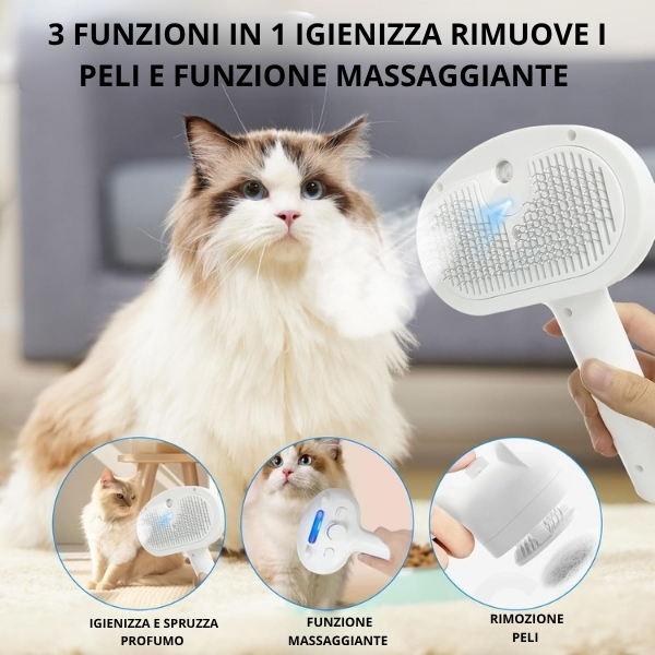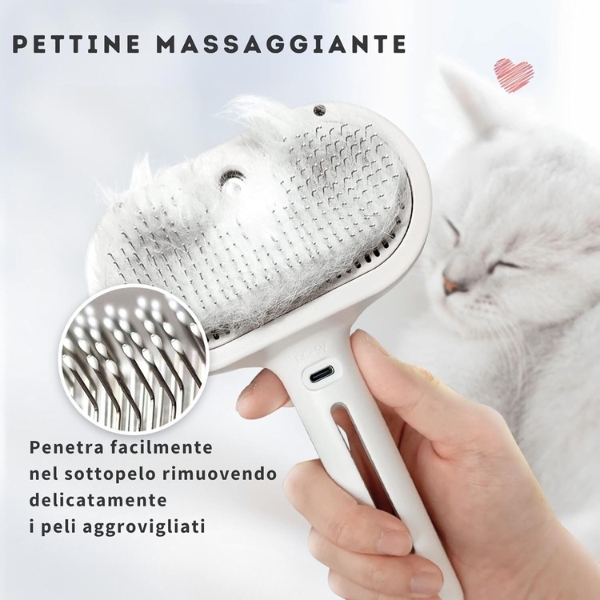 Questa spazzola a vapore non è solo uno strumento di toelettatura, ma un vero e proprio trattamento di benessere per il tuo animale. Il vapore delicato ammorbidisce il pelo, sciogliendo i nodi e rendendo la spazzolatura molto più facile e piacevole.