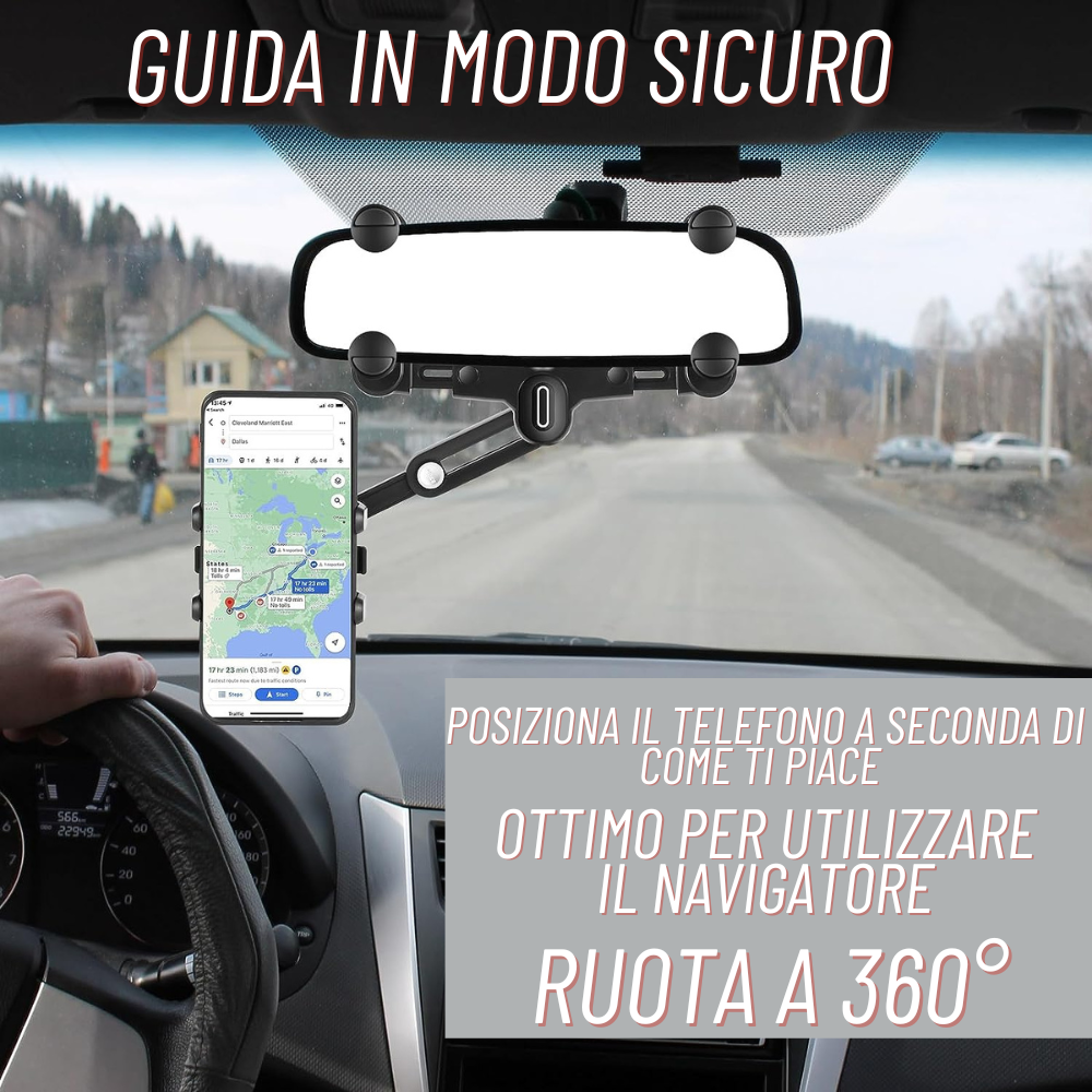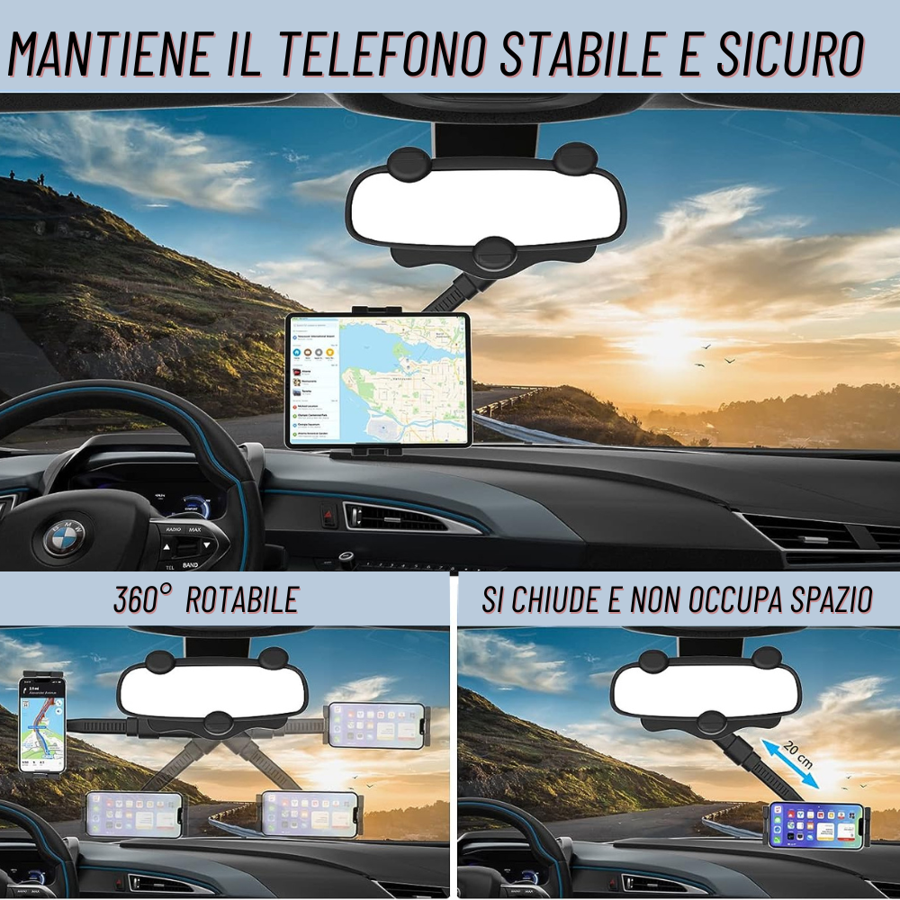 Mantiene il telefono sempre nella posizione desiderata, per evitare distrazioni alla guida durante videochiamate, utilizzo del navigatore, telefonate, invio di messaggi.