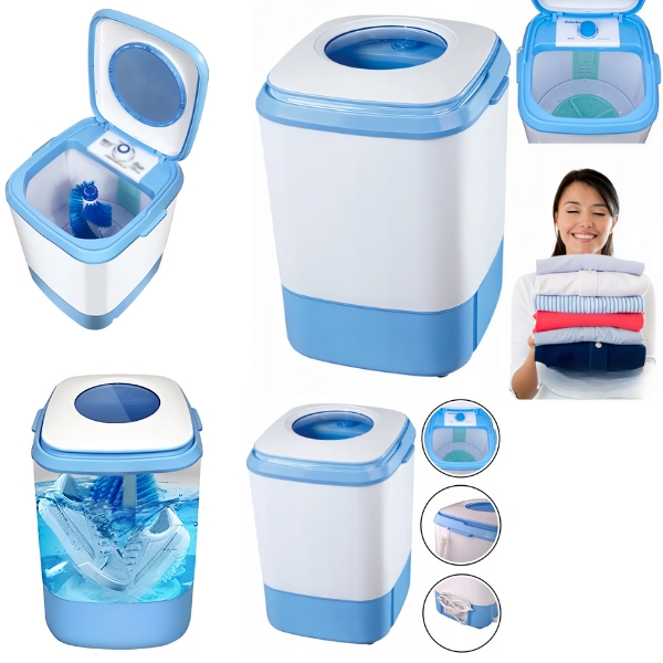 Prenosná práčka s odstreďovačkou – ušetri čas, miesto aj peniaze naraz! Kompaktná, ľahká a mimoriadne jednoduchá na používanie, táto prenosná práčka s odstreďovačkou je ideálnym riešením pre tých, ktorí chcú prať svoje oblečenie kdekoľvek a kedykoľvek.Ideálna na kempovanie, cestovanie alebo do malých bytov. Šetrí vodu, energiu aj peniaze. Zabudni na práčovne: vezmi si ju so sebou a užívaj si čisté oblečenie za pár minút!