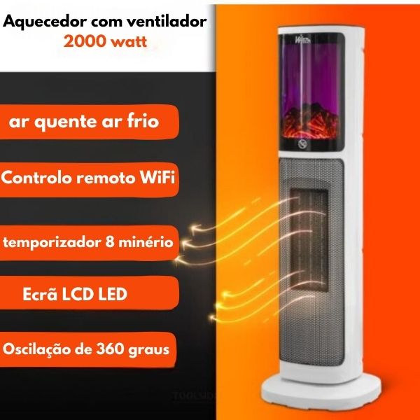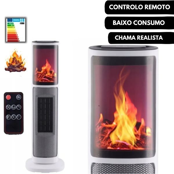 Descubra o radiador de soprador cerâmico realista com efeito de chama, que não só aquece rapidamente as salas até 100 m², mas também limpa o ar para um ambiente saudável e agradável.