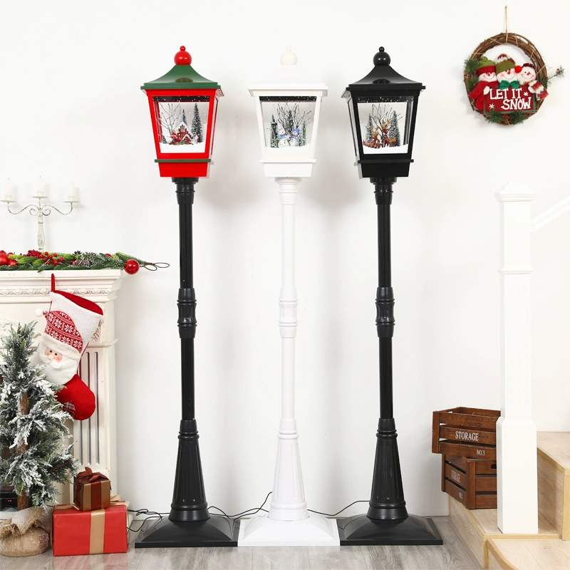 Perfetto all’ingresso di casa, in giardino o nella vetrina del tuo negozio, facilissimo da montare alto 1,80 cm ,scegli a telefono il carillon che preferisci ,all'interno della lanterna , i personaggi natalizi si muovono a ritmo della musica, è sembrerà una vera nevicata