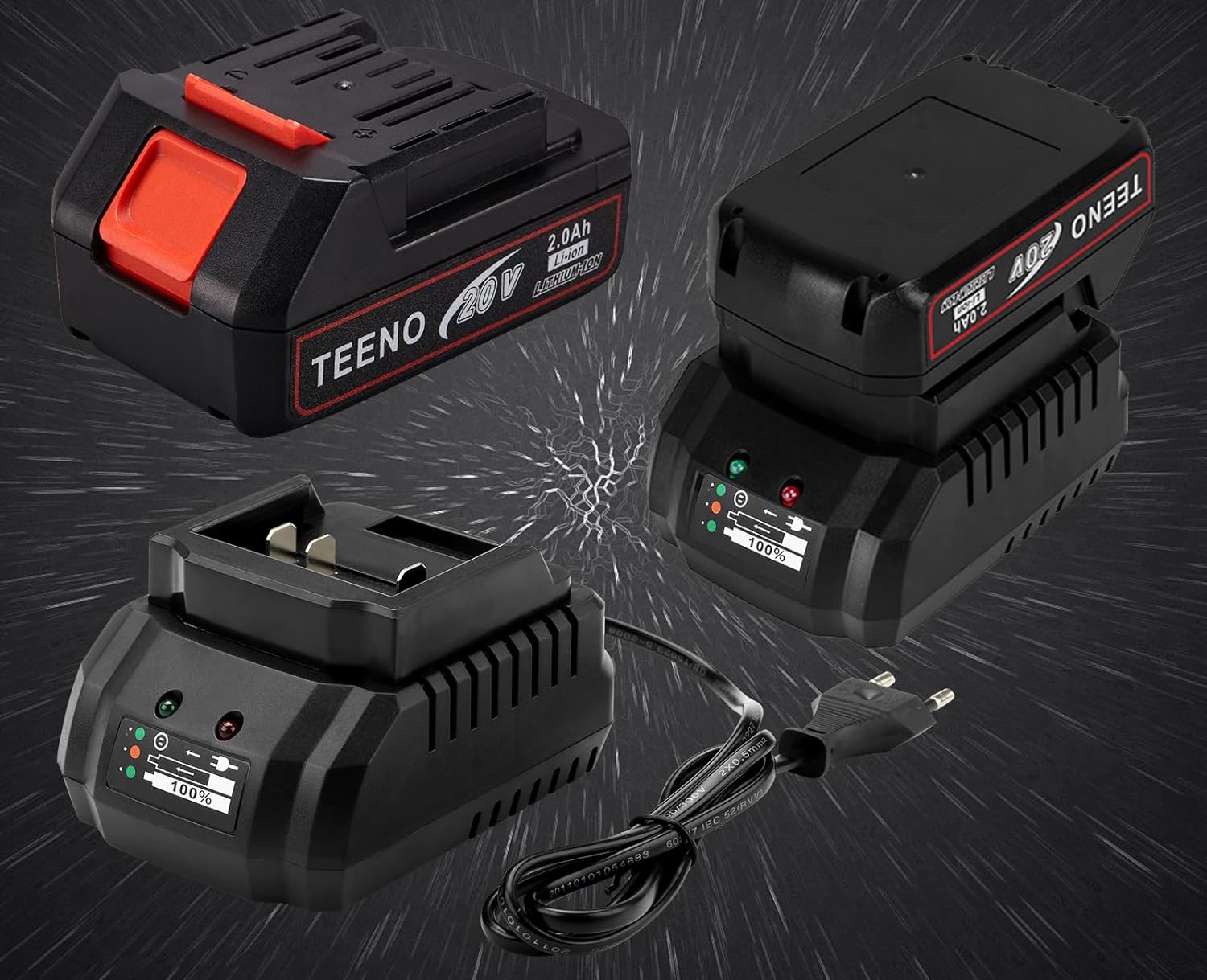 Viene fornito con una batteria di riserva, quindi non devi fermarti per un minuto. Con questo pratico strumento, puoi facilmente eseguire qualsiasi lavoro anche in spazi buii con l'illuminazione led .Carica una batteria mentre ne usi un’altra. Grazie alla pratica valigetta , lo stoccaggio e il trasporto sono molto semplici.