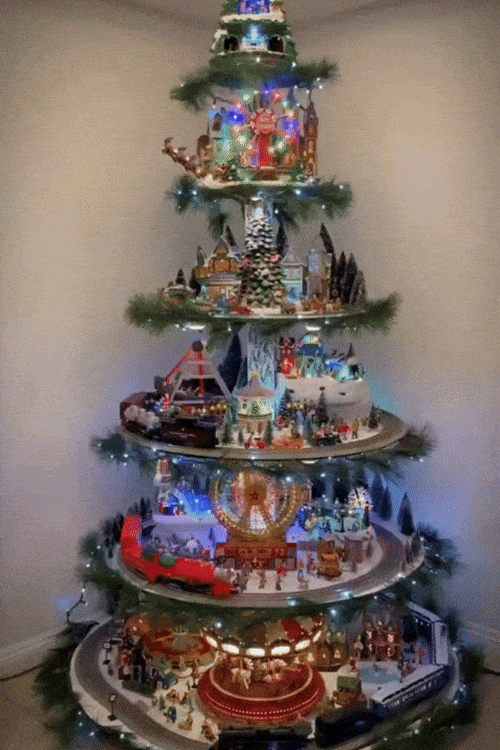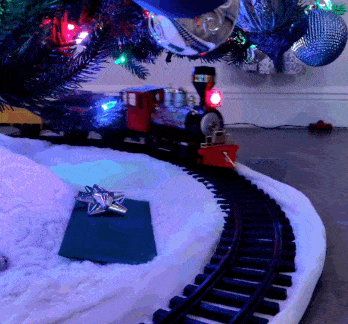 Il suo interruttore inizierà a girare intorno all’albero ed emetterà i suoni realistici di un treno in corsa