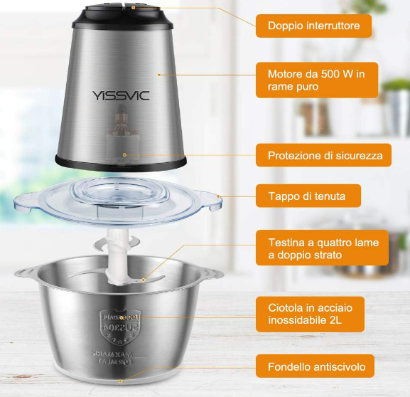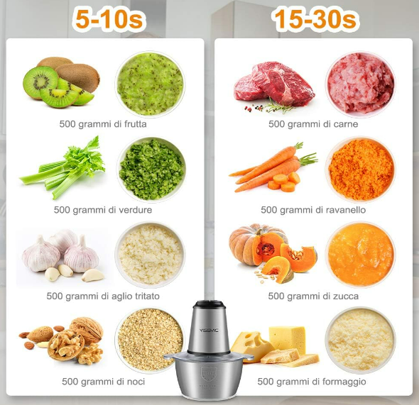 Non aspettare! Rendi la tua cucina più efficiente e divertente con il nostro Trita Carne e Verdura Elettrico. Ordina ora e goditi la comodità di preparare pasti deliziosi in modo rapido e senza sforzo!le lame non si rompano facilmente e possano tritare qualunque alimento facilmente e soprattutto velocemente.