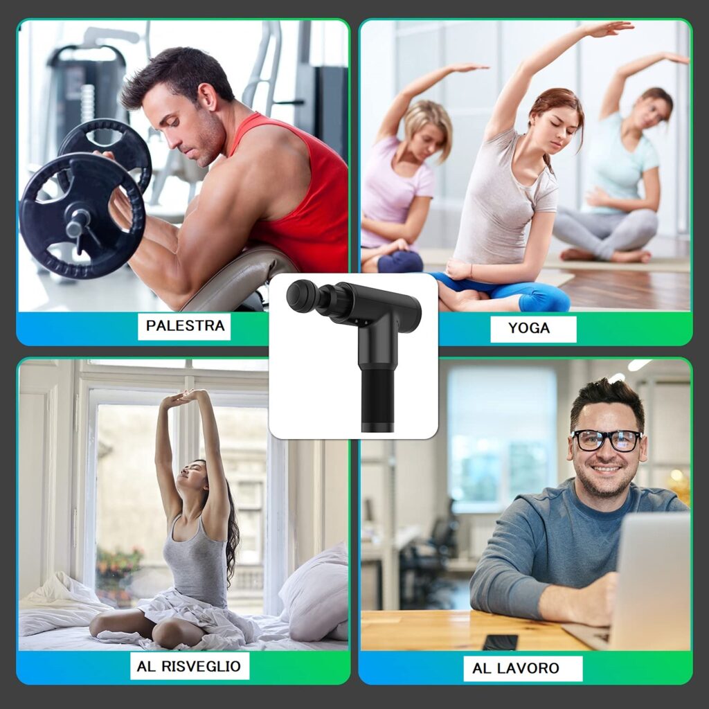 utilizza la più recente tecnologia di riduzione del rumore. Anche alla massima velocità, il massaggiatore muscolare non supererà i 60 db. Inoltre, grazie al suo design ergonomico, questo prodotto è comodo e facile da usare